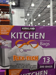 Kirkland Signature Flex-Tech 13-Gallon Kitchen Trash Bag, 200-count ​