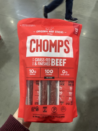 Chomps Original Beef Sticks, Mild, 12 Individually Wrapped Sticks