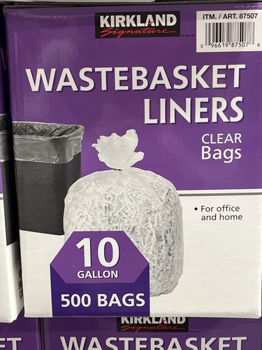 Kirkland Signature 10-Gallon Wastebasket Liner, Clear, 500-count